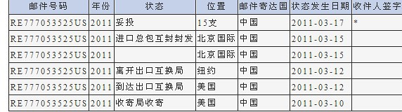 (中國郵政國際給據(jù)郵件跟蹤查詢系統(tǒng),但first class mail的包裹無法在此網(wǎng)站查到信息)